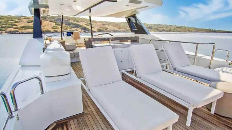 The Lara also offers plenty of space for relaxation and entertainment. It features a spacious flybridge with hardtop, swim platform, stern thruster and bow thruster, so you can enjoy the water in comfort. And thanks to zero-speed stabilizers, guests can enjoy relaxing, stable sailing, even in rough seas.
